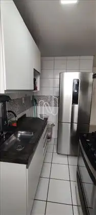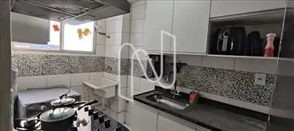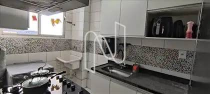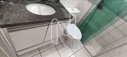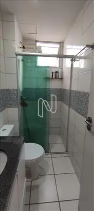 Apartamento: Aproximadamente 48,00m² de área útil, 02 quartos, 01 sala disposta para ambientes com rebaixamento em gesso, banho social com pia em granito, box blindex, cozinha com armário planejado, pia e bancada em granito, banho social com lavatório em granito e armário planejado sob a bancada.