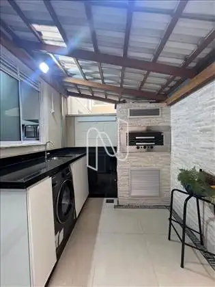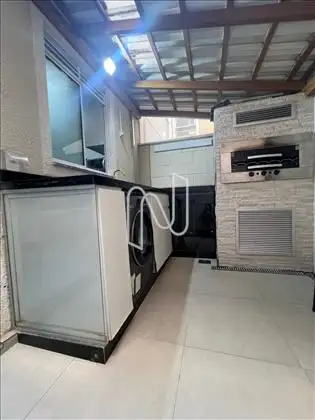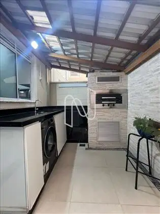 Área privativa parcialmente coberta, com armários e churrasqueira