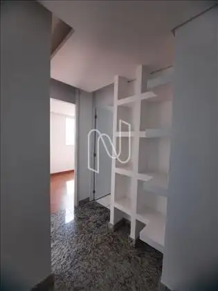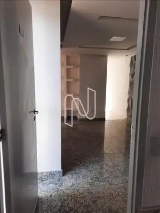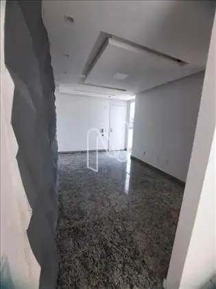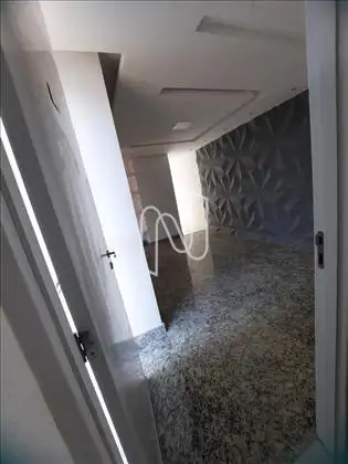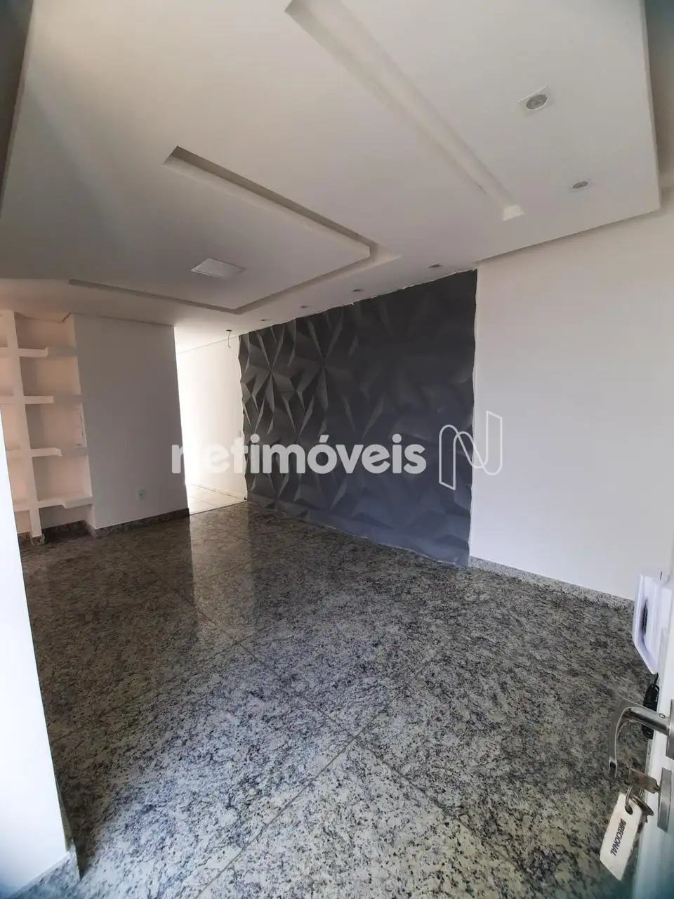 • Sala com painel e prateleiras e pisos em granitos