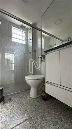 - 01 Banheiro social com box em vidro, armário e espelho;