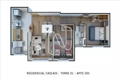 Apartamento composto por: Sala ampla para 02 ambientes, 02 quartos, 01 varanda, banheiro social, cozinha e área de serviço, piso laminado nas áreas íntimas, e de porcelanato, alumínio e vidro.