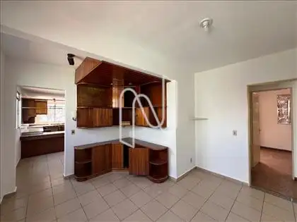 - sala de jantar p/ 2x ambientes arejada em piso em cerâmica com armário tipo escritório / estante fixa
