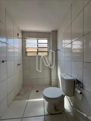 - Banheiro social revestido em cerâmica com armarinho com espelho pia e porcelana e box em acrílico
