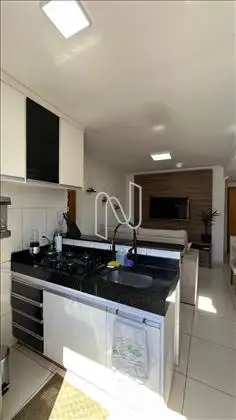 Cozinha funcional, equipada com armários planejados e fogão cooktop;
